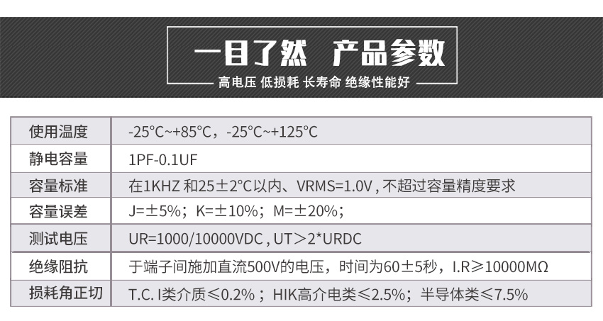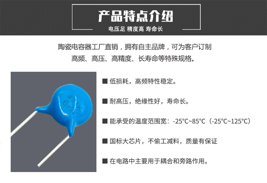 - 產(chǎn)品特性:高頻損耗小、穩(wěn)定性好、體積小、耐壓高、介質(zhì)損耗低、頻率特性優(yōu)良、過電流大、電壓特性好。